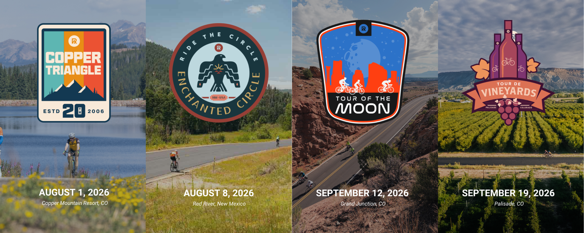 The Ride Collective is a portfolio of professionally-produced bicycle tours in both Colorado and New Mexico. Our host venues and terrain vary from the Rocky Mountains to the High Desert. We strive to create an inclusive culture where cyclists of most all abilities can enjoy a curated experience both on and off the bicycle. For some it’s about the challenge, others do it for a cause, but everybody enjoys surfing the energy of its participants; our events range from 500 to 2,000 people, plus their friends and family. Come along for the ride!